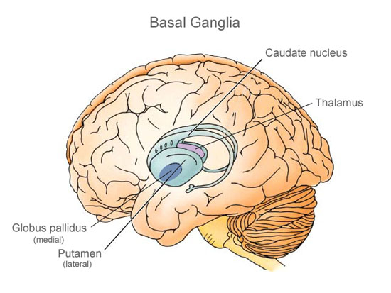 Huntington’s chorea is due to slow degeneration in the basal ganglia, which eventually leads to cell death in the brain and the decrease and increase of various neurotransmitters. The symptoms of the disease are caused by a significant reduction (volume and activity) of two principal neurotransmitters (naturally occurring chemicals in the brain) – namely Acetylcholine and GABA, in turn affecting the activity of the neurotransmitter Dopamine, which becomes hyperactive. The disorder is partly characterized by an increase in the availability of dopamine, which can cause symptoms of chorea. HD is a basal ganglia disease; the portions most severely affected are caudate and putamen.