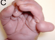 - Extra fingers or toes (polydactyly). Clenched hands with outer fingers on top of the inner fingers.