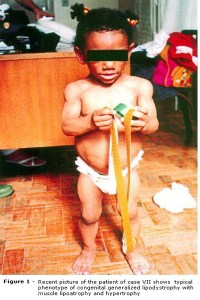 Congenital Generalized Lipodystrophy is a rare genetic disease. It is characterized by near complete absence of body fat. It is inherited as an autosomal recessive disorder. It is a disease involving the adipose tissue (fat tissue) of the body.
