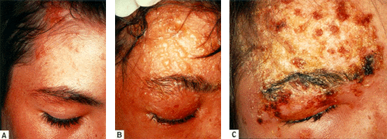 The disease may appear practically any place in the body. It may appear on the face (very common), tongue, mouth, and eye. It’s commonly seen on the one side of the chest.