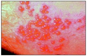 This disease is characterized by a one sided vesicular eruption on the line of a nerve and is associated with severe pain. The erythematous maculopapular rash changes rapidly into vesicular lesions. The onset of the disease starts usually with severe pain on the line of the nerve that is involved with the disease process. The eruption may remain few in number or may continue to form for 3 to 5 days. The total duration of disease is generally between 7 and 10 days; however, it may take as long as 2 to 4 weeks for the skin to return to normal.