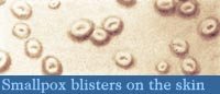 The differentiating features are:All smallpox lesions develop at the same pace and, on any part of the body, appear identical.Chickenpox lesions are much more superficial and develop in crops. With chickenpox, scabs, vesicles, and pustules may be seen simultaneously on adjacent areas of skin. Moreover, the rash in chickenpox is more dense over the trunk which is reverse with smallpox. Chickenpox lesions are almost never found on the palms or soles. |