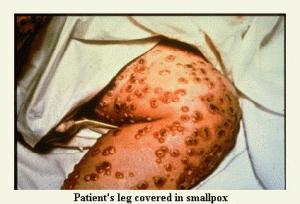 Smallpox was a relatively less contagious disease whose transmission required close contact. Fever and macular rash appeared after an average incubation period of 12 days, with a progression to typical vesicular and pustular lesions over 1 to 2 weeks.