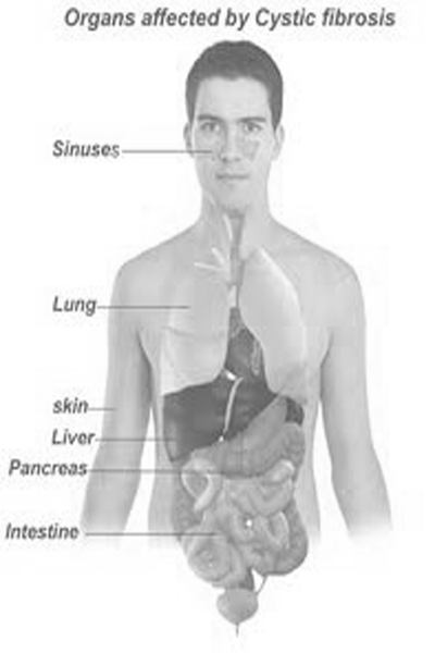 | Cystic Fibrosis is an inherited disease of secretory glands that make mucus and sweat. Cystic fibrosis mostly affects the lungs, pancreas, liver, intestines, sinuses, and sex organs. In this disease the mucus made by glands is thick and sticky. |