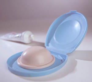When fitted inside it covers the cervix lying above the diaphragm while the ring comes in contact with the vaginal wall all round.The diaphragm is introduced before intercourse and is taken out at least 8 hours after the last intercourse. It is washed with cold water and soap and dried and left in the container for reuse. One diaphragm can be used for approx. 6 months.